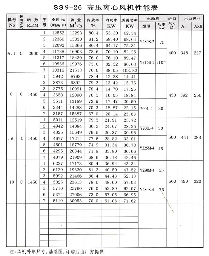 產(chǎn)品名稱: SS型 9-16,9-26高壓離心風(fēng)機(jī)